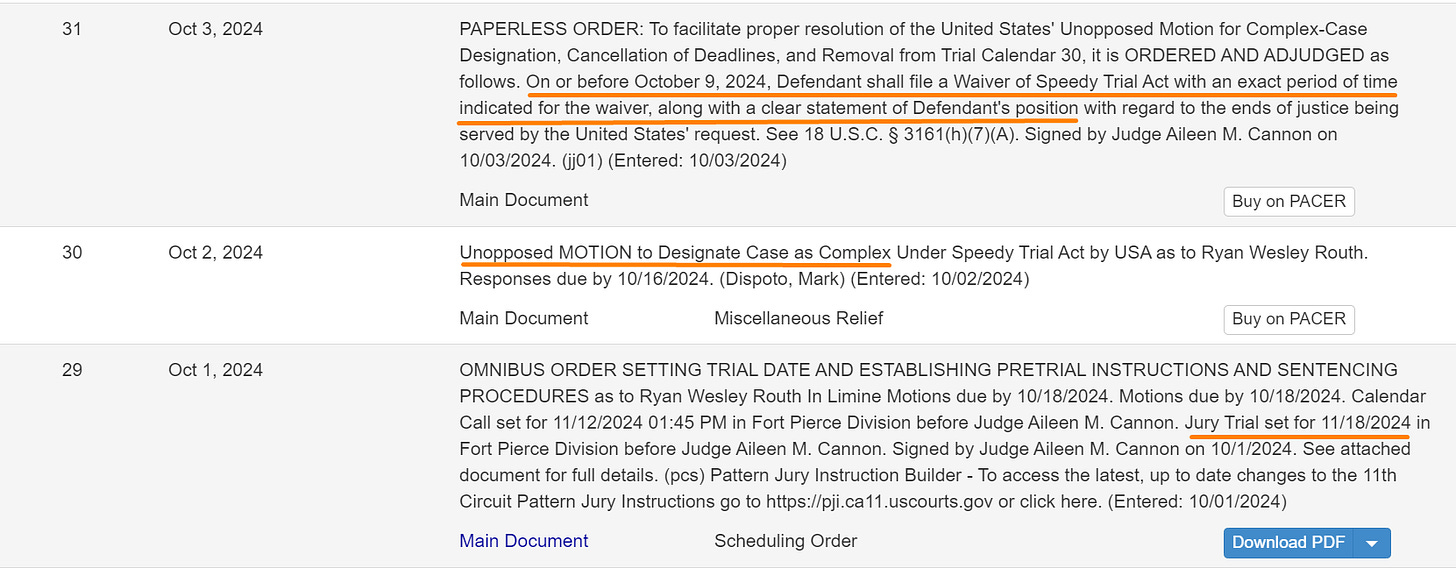 Routh’s counsel were unopposed to the designation, but Judge Cannon asked to hear from the defendant directly on or before October 9.