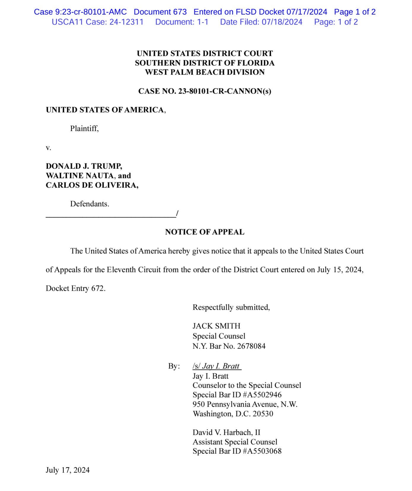 Judge Cannon dismissed this case over the summer, granting Trump’s Motion to Dismiss Indictment Based on the Unlawful Appointment, a motion that Trump’s Counsel have not filed in the D.C. case, by the way. Curious that.