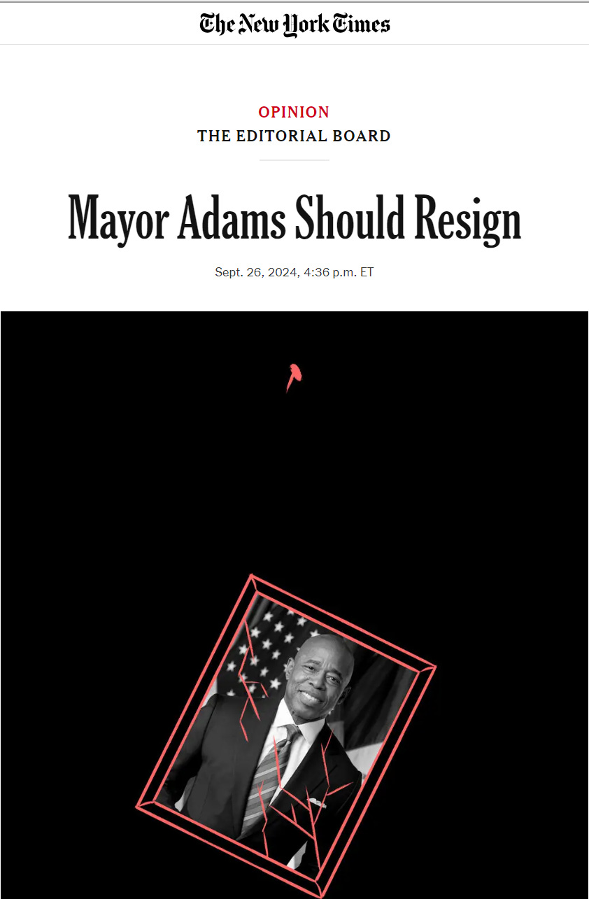 New York City Mayor Eric Adams, indicted just a little over a week ago, has yet to resign despite many calling for him to do so and people in his administration abandoning ship.