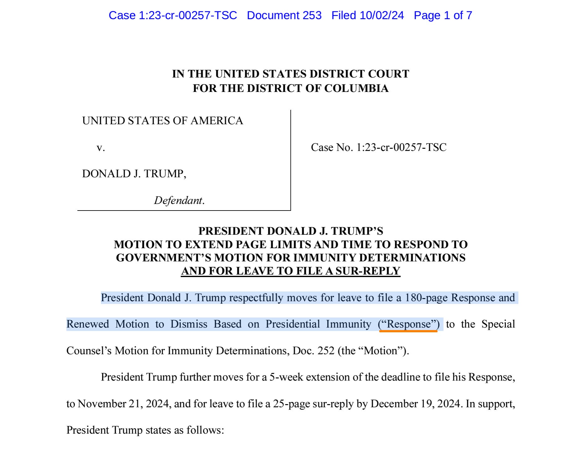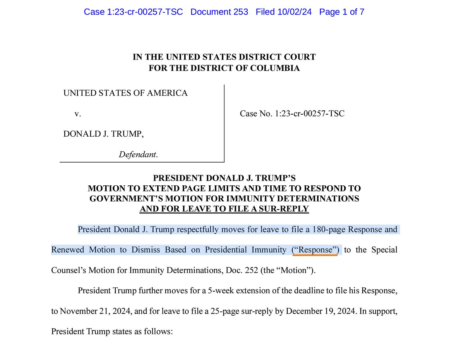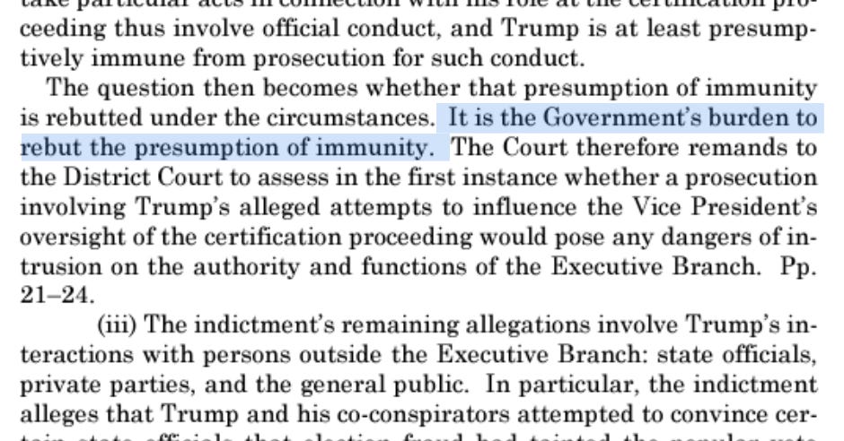 However, it is also the immunity briefing, more or less... okay, more, much more, that he was expected to file and that Trump’s counsel is also expected to respond to as both sides work out what qualifies for immunity. This filing is Smith meeting the “burden” SCOTUS told him that he carried. Or at least, that is how Smith would likely defend it anyway.