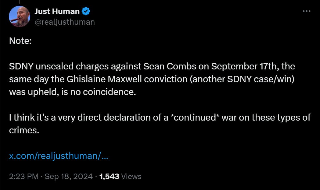 I thought it might be useful for me to compose, and for my readers to receive, a weekly or biweekly newsletter featuring a collection of updates from the criminal and civil cases we like to keep track of ‘round these parts. Cases such as those brought by the Special Counsels (Trump x2, Hunter x2, Smirnov) will get a lot of attention, as will the Trump would-be assassin cases (Merchant, Routh) and the political corruption cases (Menendez, Adams, and hopefully many more to come). I will also provide updates on more obscure cases, such as the Seth Rich FOIA case (Huddleston), the Smartmatic corruption case (Bautista), and a few others. And of course, the very high-profile P. Diddy (Combs) case will also be tracked closely.