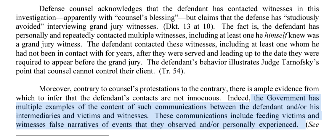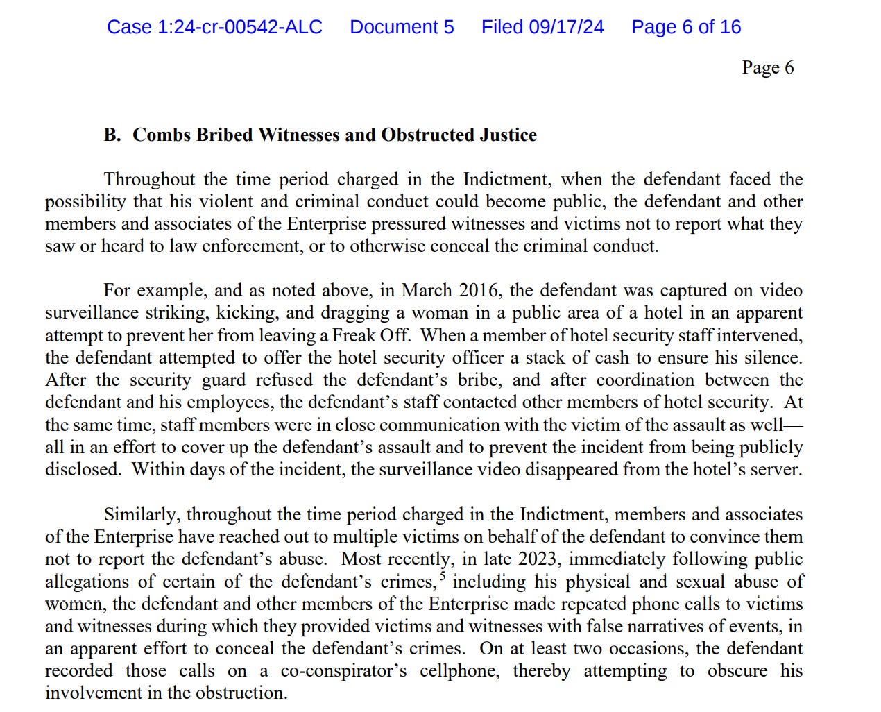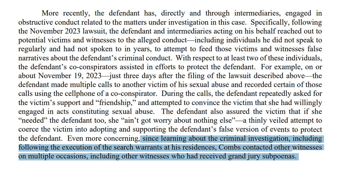 Well, that’s probably intentional and correctly so, considering Mr. Combs’ history of witness tampering, obstruction, and similar behaviors both prior to and during the investigation that led to the indictment in this case.