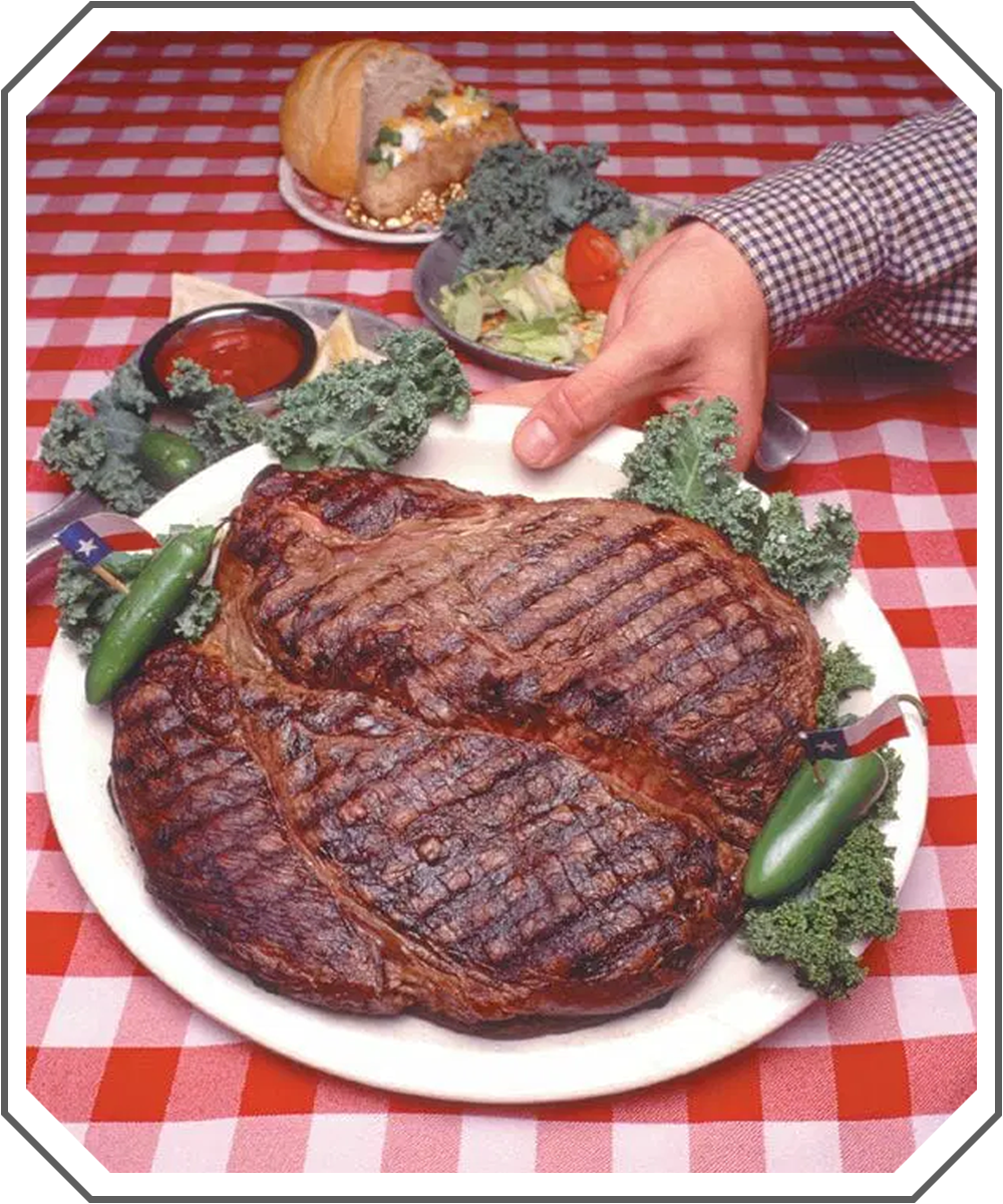 Another portion of readers, though, licked their lips, considered the magnitude of their appetite for steak, the volume of their gut, and gripped, if only for a minute or two, an initial thought that rapidly morphed into a personal challenge pretending to be a declaration: